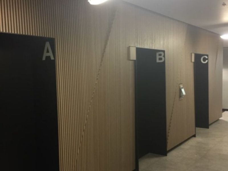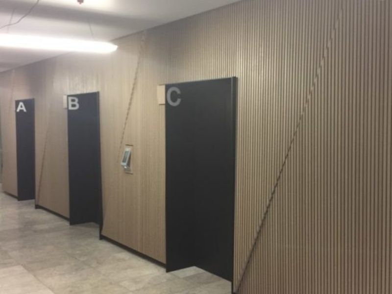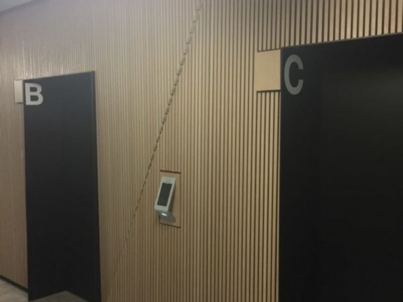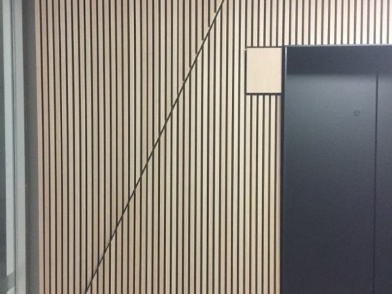 The team from JI Commercial used Mirotone’s MIROTHANE PU 5578 Clear Natural Topcoat – to coat the wall panels in this premium building.