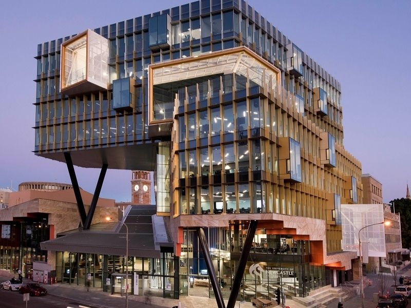 Built on the corner of Hunter and Auckland Street, the University of Newcastle’s, NeW Space building showcases Newcastle’s 360 degree vista views of the lower Hunter – and at its highest point is 49 metres above ground.